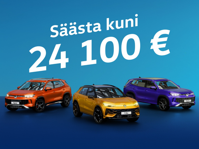 1 Eripakkumine kehtib piiratud arvule sõidukitele ja on suunatud eraisikutele ajavahemikus 11.–31. mai 2026 või kuni kampaaniaasõidukeid jätkub. Küsi täpsemat pakkumist lähimast Volkswageni esindusest. Soodustused ei ole summeeritavad.